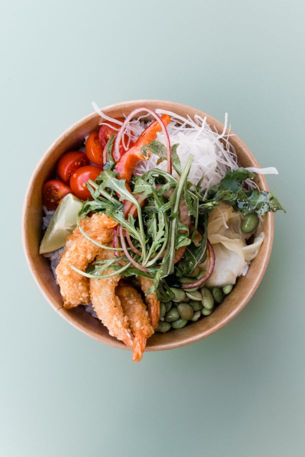 Jasmin riža, panirane kozice, edamame, paprika, mrkva, rikola, ljubičasti luk, mini rajčica, limeta, rotkvica, marinirani đumbir, kikiriki, korijander i azijski umak sastojci su ove aromatične azijske zdjelice sreće, koji osvajaju na prvi zalogaj.