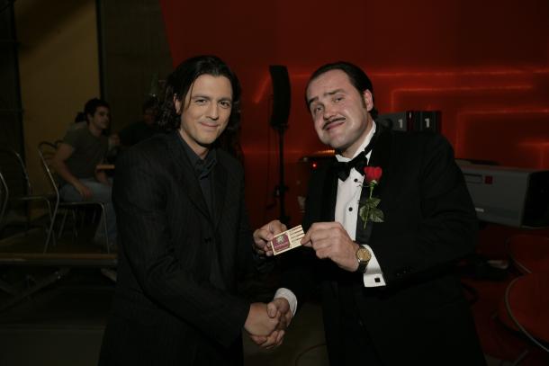 Nani Poljanec u ulogi Don Corleona u emisiji HirBar (7 sezona od 2004 do 2010) na nacionalnoj TV Slovenija sa legendarnim nogometašem Zlatkom ZahovićemW: Od kada ovaj muzej datira?