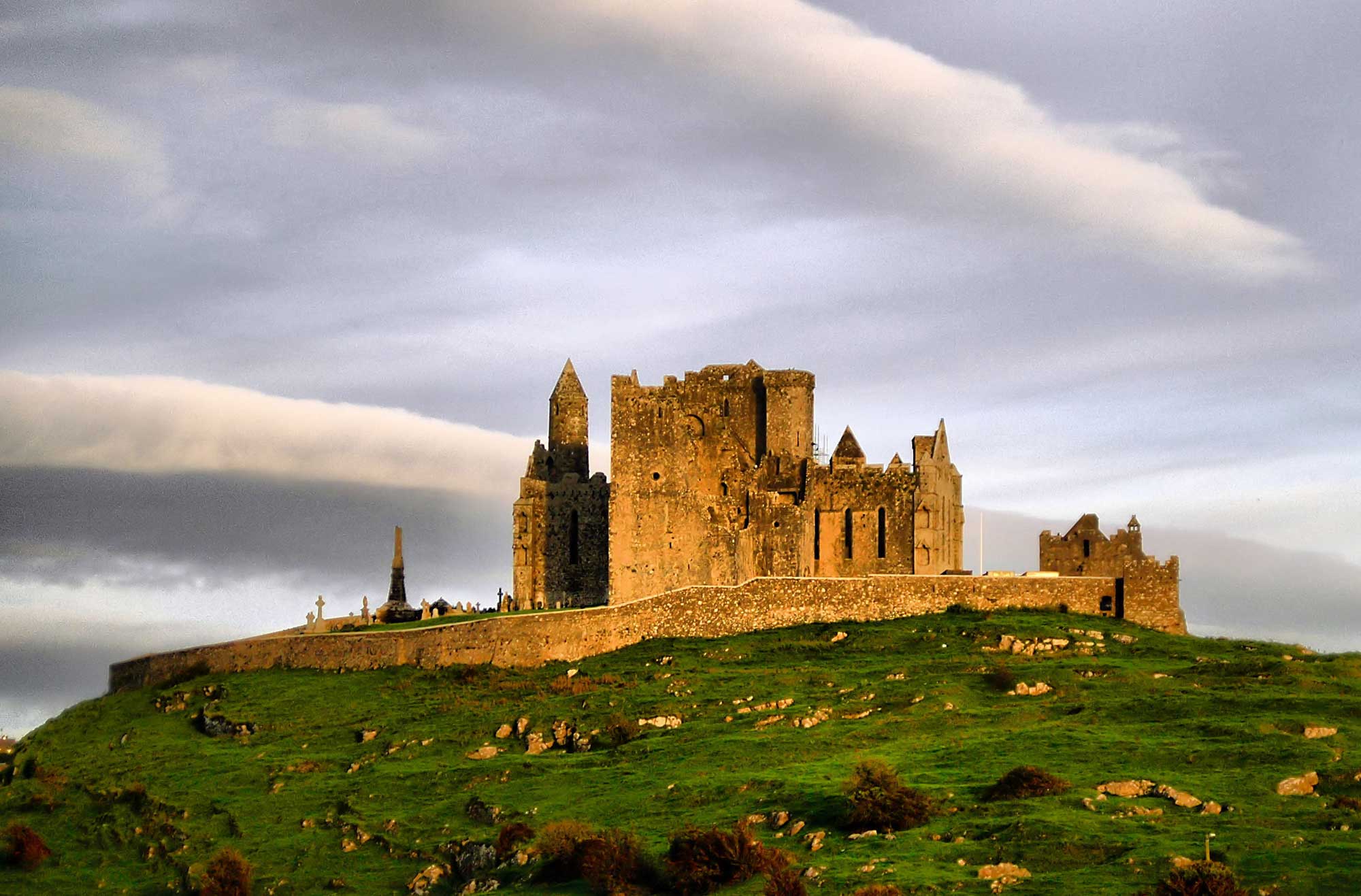 Visit the historic site Rock of Cashel in the south. It is a fortified center of Irish kings which dates from the 12th century and brings together the well-preserved buildings of medieval architecture and a number of Celtic works of art. The tallest building in this complex is a circular tower which rises to about 28 meters.