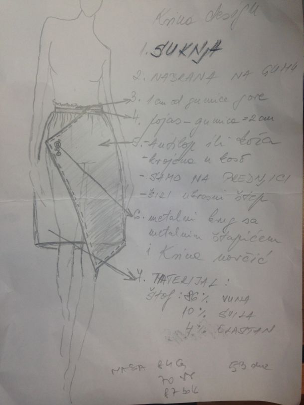 Najvažnija stvar je što voljm propitivati i slušati svoje kupce kao i prijateljice, što žele nositi, u čemu se dobro osjećaju i što vole kombinirati pa kad se vratim u atelier usklađujem svoje ideje sa kratkim crticama koje sam zapisivala i skicirala…Iako obožavam crnu, također volim sukobljavanje boja koje time daju mojim kolekcijama dozu neobičnosti.