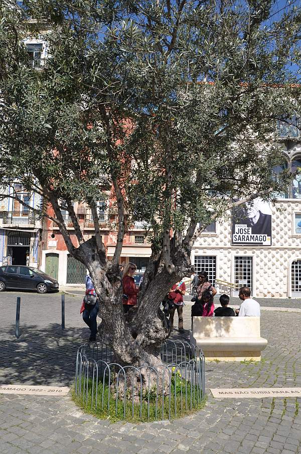 Prije samog ulaza u ovaj labirint uličica ne može se ne zamijetiti građevina s kamenim pročeljem u obliku dijamanata ispred kojeg je i drvo masline, posvećeno poznatom portugalskom književniku i dobitniku Nobelove nagrade za književnost 1998. godine – Joseu Saramagou.