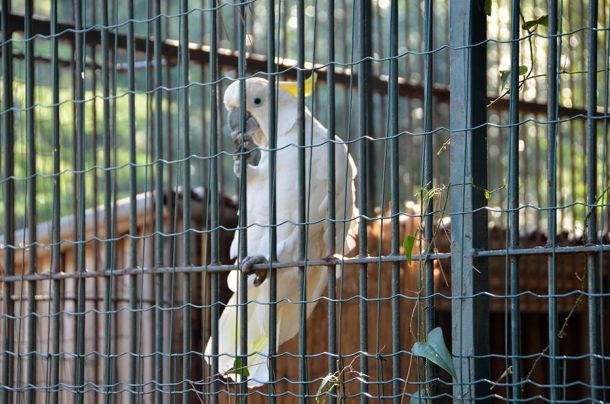Međutim, postoji jedan dugogodišnji stanovnik Brijuna, u kavezu nedaleko hotela, gotovo u samoj luci: kakadu Koki (cactua galerita).