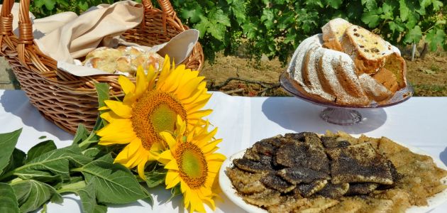 Na bogatome stolu našli su se kulen, kulenova seka, sirevi (kravlji, podlijevani, tvrdi s paprikom, orasima, dimljeni) zapečene flekice sa šunkom i sirom, taške s orasima i makom, salenjaci, mramorni kolač – svatko je mogao naći svoj omiljeni zalogaj i spariti ga s pjenušavim ili mirnim vinom koje mu je najbolje odgovaralo.