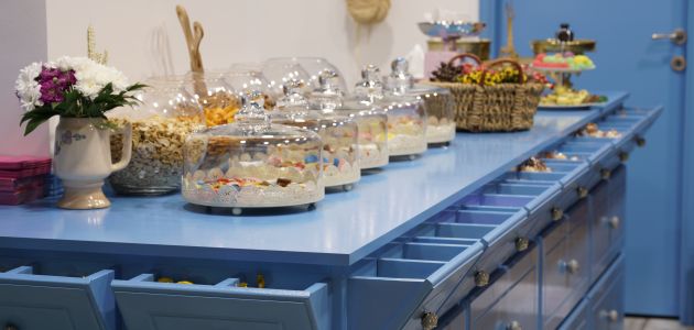 U prostoru dominiraju uglavnom dvije boje, a to je otvoreno plava s dominantnim kuhinjskim namještajem kojeg popularno zovemo kredenc i tople smeđe boje otvorenih polica na kojima su poslagane stvari koje su u kuhinji neophodne. Kao i nekoć tu su i vreće iz prirodnih materijala u kojima se pohranjuju namirnice poput orašastih plodova. Izloženi proizvodi na policama i u otvorenim ladicama stvaraju šarenilo kroz cijeli prostor. Eko materijal i savršeno skladna paleta boja pružaju u prostoru osjećaj topline i prijateljstva, što je glavna odrednica branda.