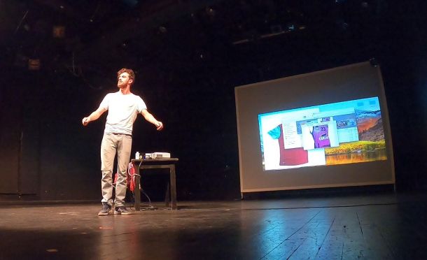 Na pozornici su Julian (Domagoj Mrkonjić) i njegov kompjuter s kojeg projicira obiteljske fotografije koje ga ponukaju da nam ispriča svoju priču o odrastanju.